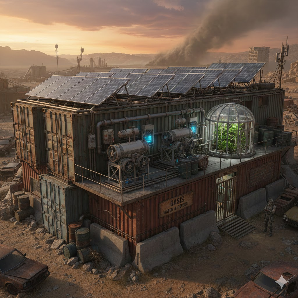 En un entorno postapocalíptico, las fuentes de agua tradicionales escasean debido a la contaminación, los daños o la competencia. La función principal de un generador aire-agua es extraer la humedad del aire, lo que posibilita la autosuficiencia hídrica en un entorno con escasez de recursos. Sin embargo, Soluciones de agua potable Generalmente requieren electricidad, lo que suele ser difícil de garantizar en el contexto de un colapso económico postapocalíptico.